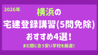 登録講習(5問免除) 【2026年】横浜の宅建登録講習(5問免除)おすすめ4選!まだ間に合う安い学校を厳選! 2026年に横浜で開催される宅建の登録講習(5問免除)の中で、おすすめ4選をご紹介します。「登録講習」は国土交通省が定めた「登録申請の手引き(登録講習)」に基づいて、国土交通大臣の登録を受けた登録講習の登録講習機関にて講習が開催されてます。... 2026.02.01 登録講習(5問免除)