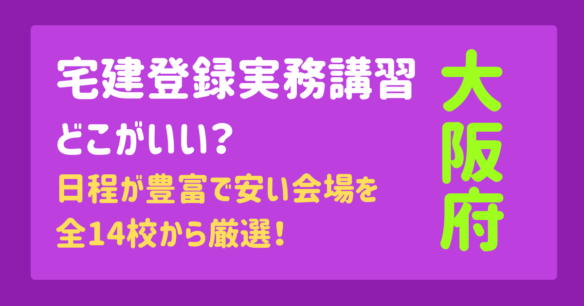 大阪府内(梅田・難波・京橋・堺・枚方など)には、現在14の宅建登録実務講習の実施機関がありますが「どこで受けても同じ」ではありません。実はスクールによって「開催頻度」や「会場の場所」が全く異なります。